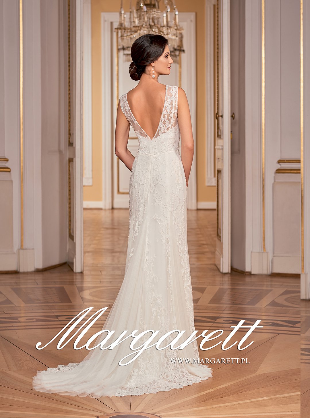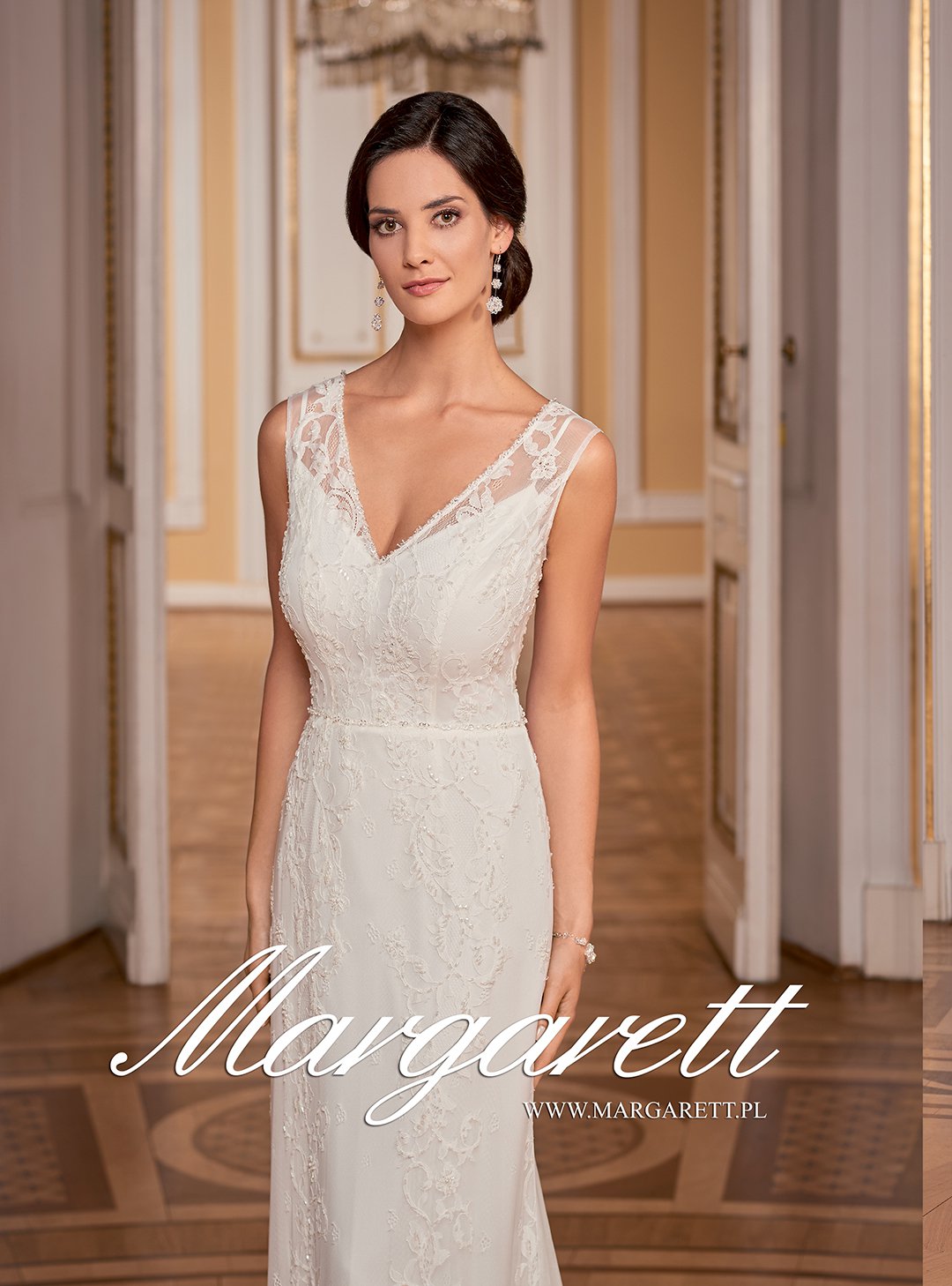 Suknia ślubna Nostalgia wykonana jest w całości z haftowanej koronki. Wyróżnia się pięknymi dekoltami z delikatnymi prześwitami. Suknia ślubna Nostalgia charakteryzuje się wąską górą i szerokim lejącym dołem.